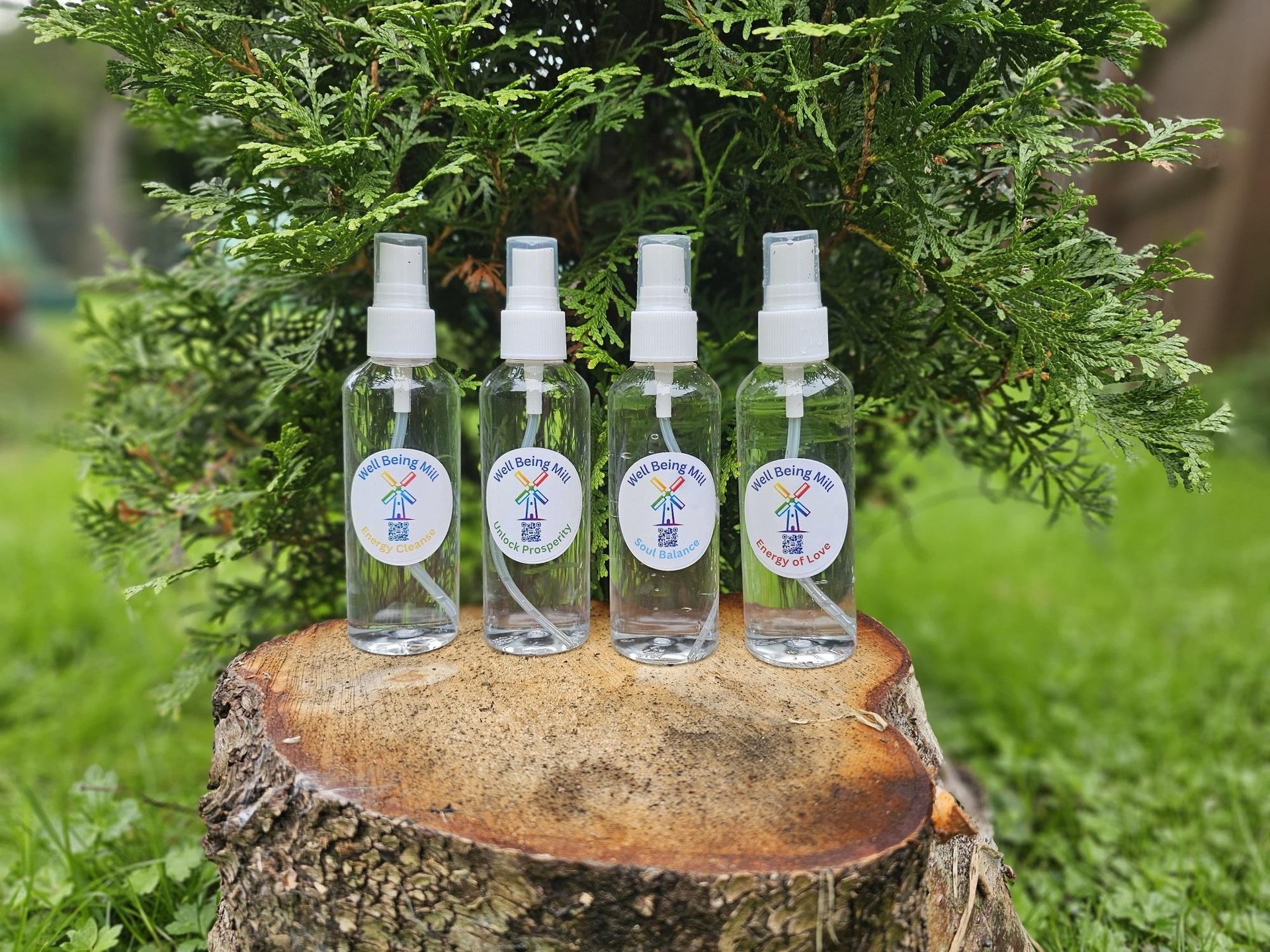 Hold the bottle in your hand with the spray facing you and spray your upper body three times from left to right (like a rainbow) and then continue with a further three sprays on the lower half of your body to complete the circle. By doing this, you cleanse and clear away all negative energies, entities, day to day stress. This will amplify, cleanse and clear your aura field so that light and positivity will return.