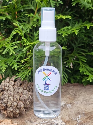 Hold the bottle in your hand with the spray facing you and spray your upper body three times from left to right (like a rainbow) and then continue with a further three sprays on the lower half of your body to complete the circle. For example, you can spray the water around your business or project. Cleansing and clearing negative belief systems about wealth. Negative belief systems from your ancestors about prosperity and abundance. This water will align you with the frequency and vibration of prosperity and abundance.